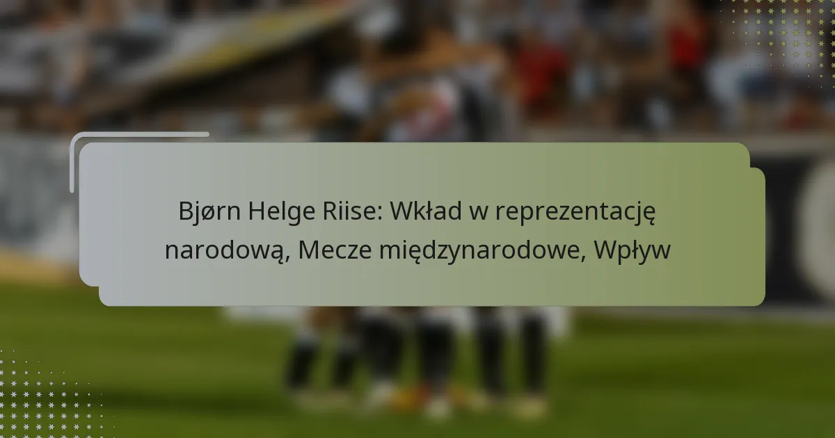 Bjørn Helge Riise był kluczową postacią w norweskiej reprezentacji narodowej, znany z wszechstronnego stylu gry, który łączył strzelanie goli, asysty oraz silne umiejętności defensywne. W trakcie swojej kariery międzynarodowej wniósł znaczący wkład w różne turnieje, w tym Mistrzostwa Europy UEFA oraz Mistrzostwa Świata FIFA, pozostawiając trwały wpływ na dynamikę drużyny i inspirując przyszłych zawodników.