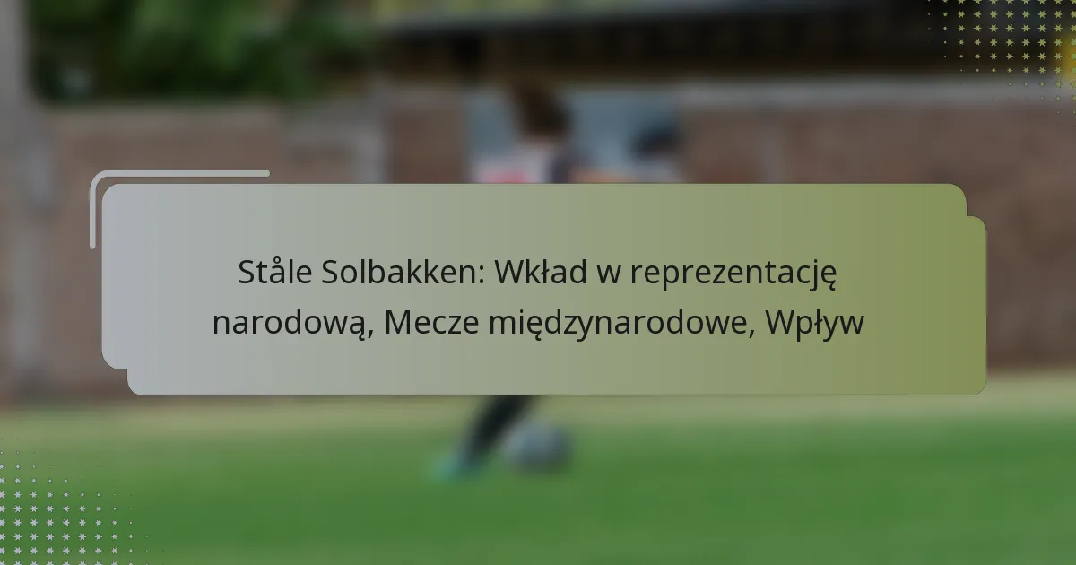 Jakie są kluczowe wkłady Ståle Solbakkena w reprezentację narodową?